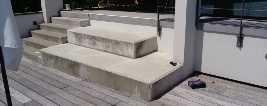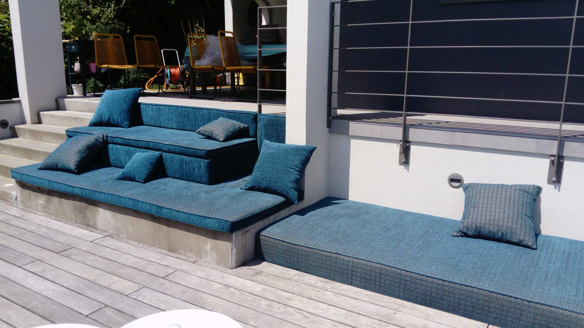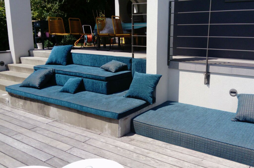 Ensemble de banquette en tissus spécial OutDoor pour habiller ces marches