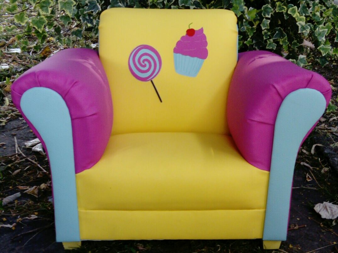 Des petits fauteuils Club pour les enfants que nous réalisons sur mesure. Nous fabriquons nous même la structure et le garnissons comme un fauteuil classique.