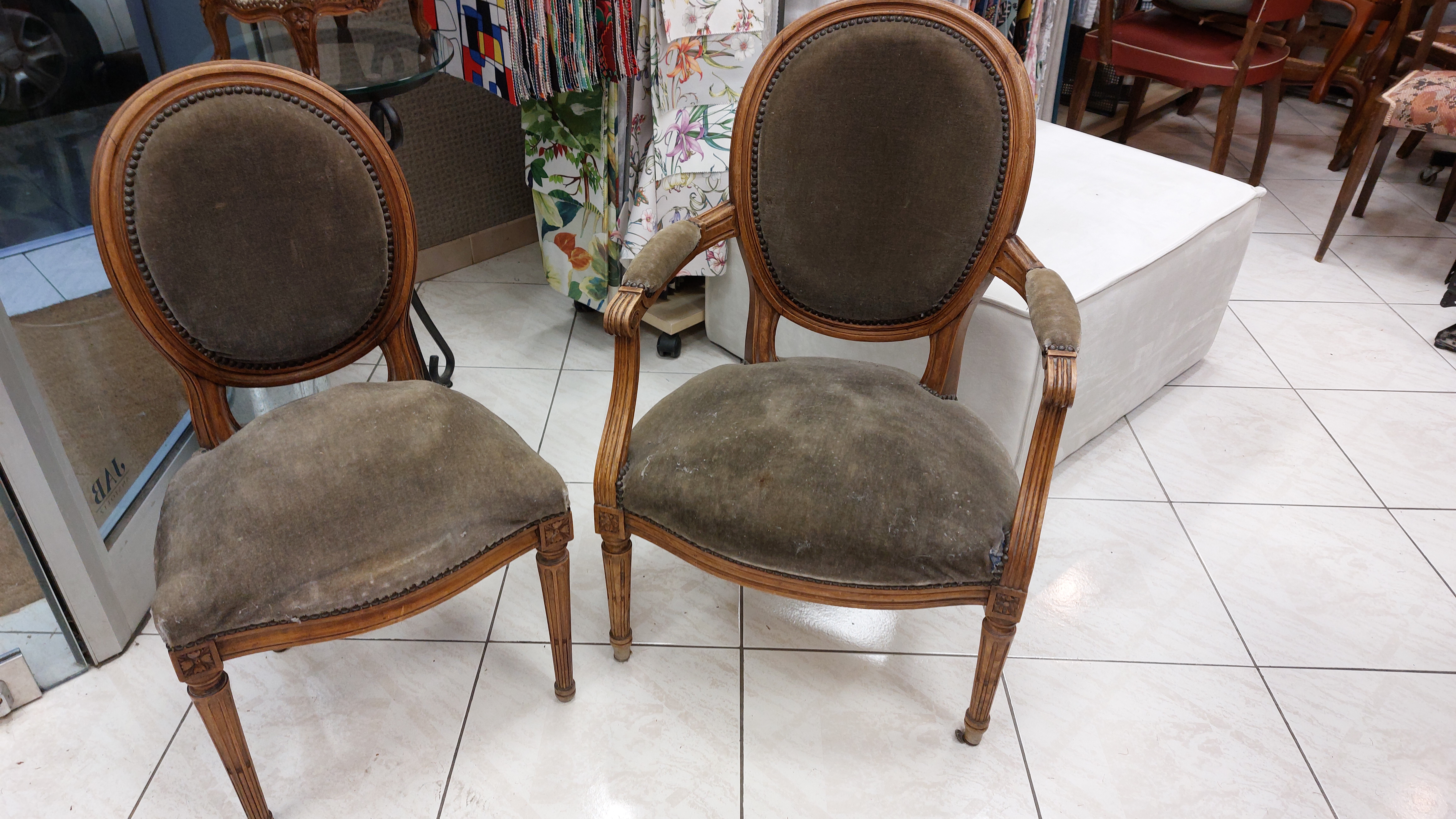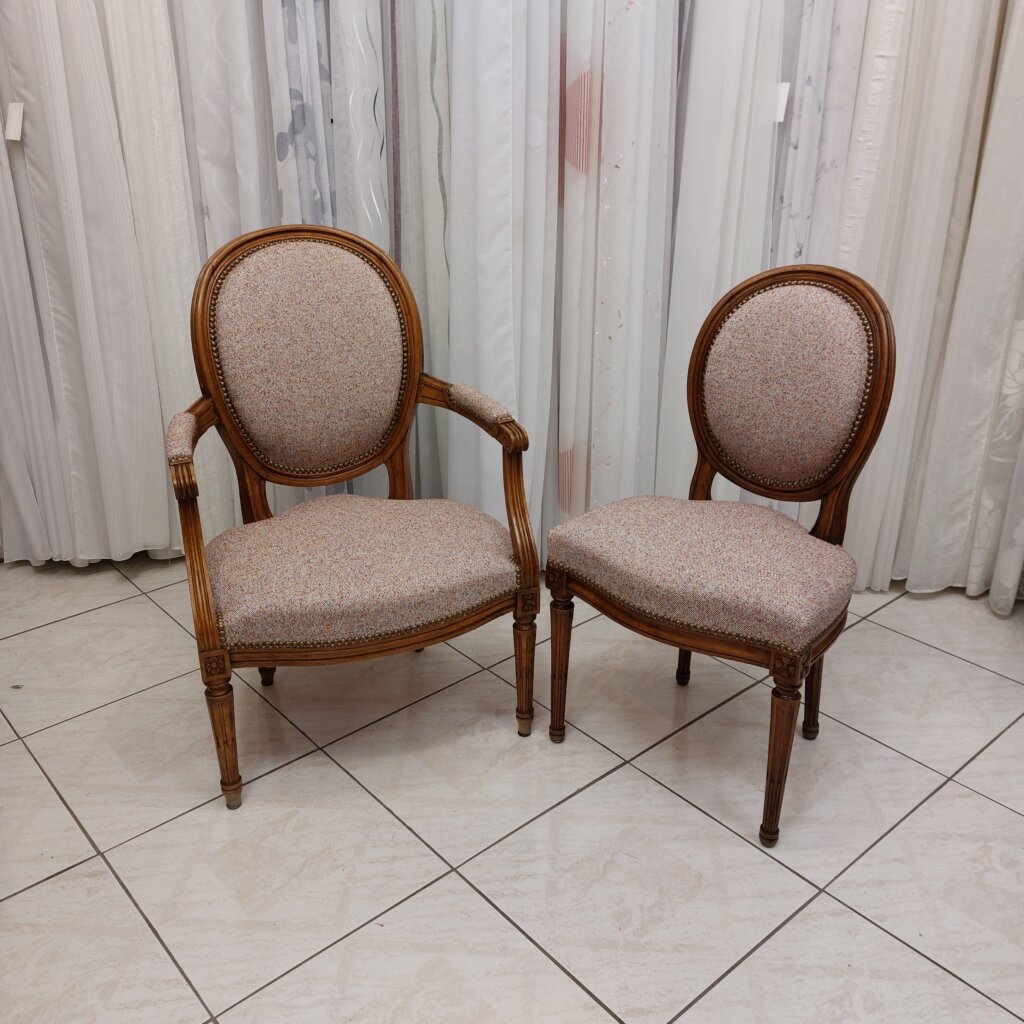 Un autre ensemble de chaise et fauteuil médaillon Louis XVI assortis